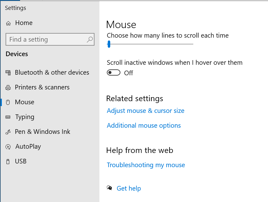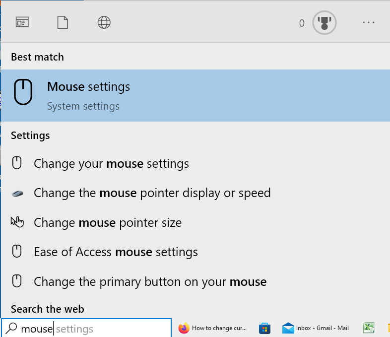 Windows display (task bar) and enter "mouse settings"