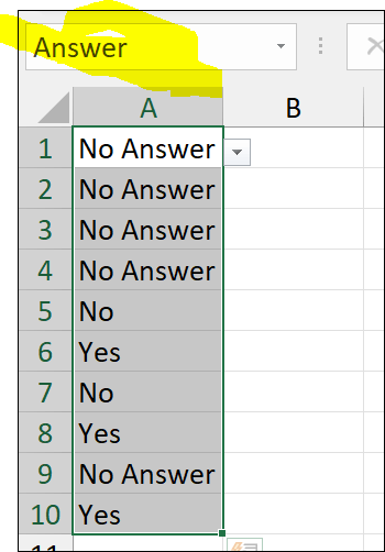 In this figure I have named the range A1:A10 Answer.