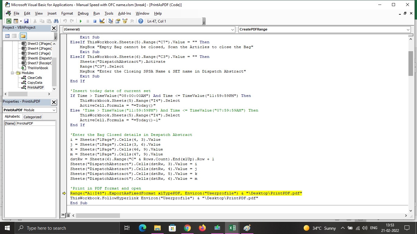 Make sure you don't have that PDF opened while running this Macro because if the PDF file is opened somewhere, Macro would not be able to save it.