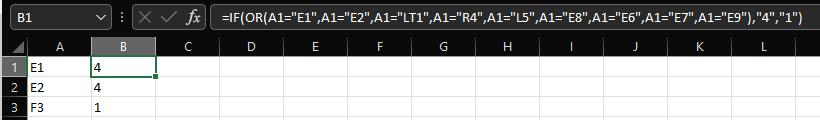 - Anywhere in your workbook create a table with all the lookup values and their respective results/values
