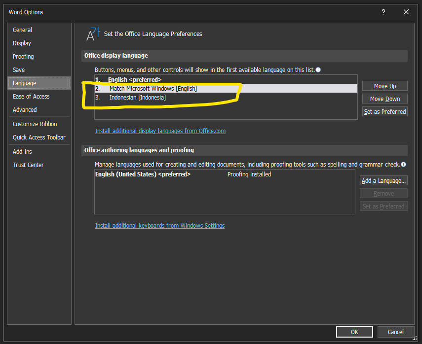 To remove the display language for Microsoft 365 suite, please go to the Control Panel > Programs and features and remove the corresponding language package. For example: