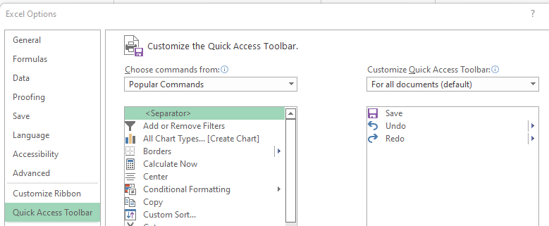 I am Dave, I will help you with this, you seen to have the new UI version of the Office apps, the QAT is now located between the Save icon and the document title on the top bar of the office apps.