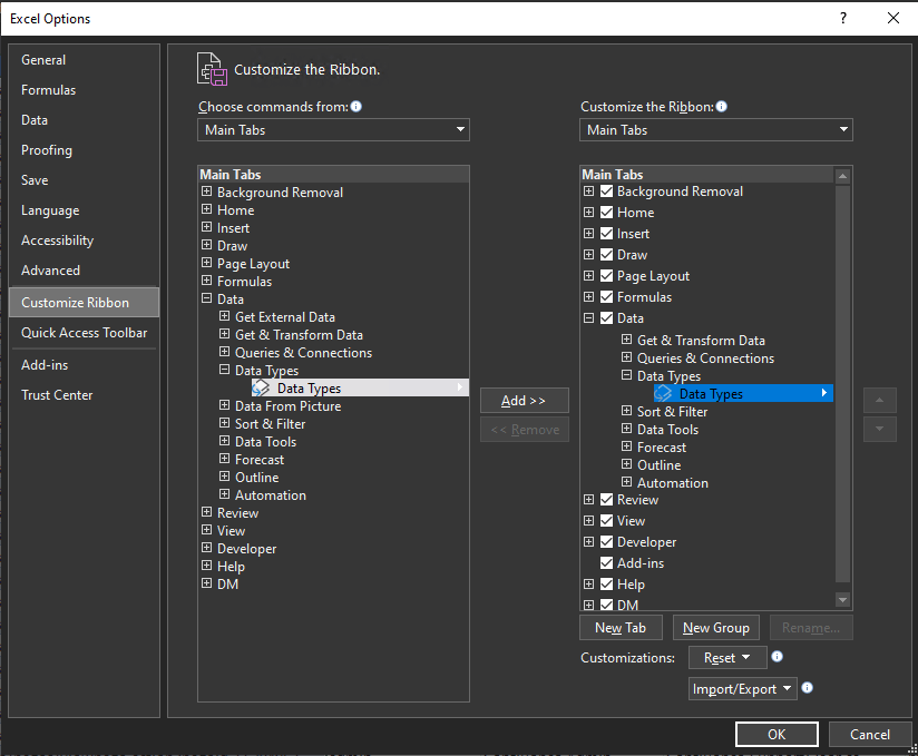 From your description, it seems that you are using Excel for Current Channel, and you want to find Automatic DataType in Excel.