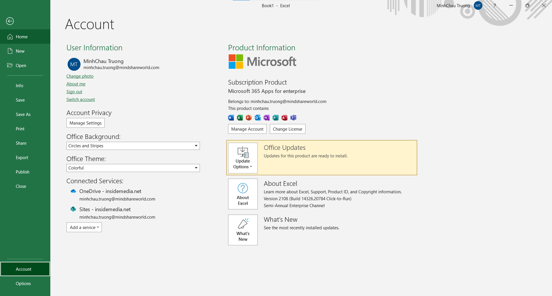 - Please provide the screenshot of Excel version to us. Open Excel>File>Account, look for the information under Product Information to take a screenshot.