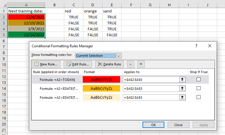 drag down. As you see if the formula returns TRUE the cell is formatted.