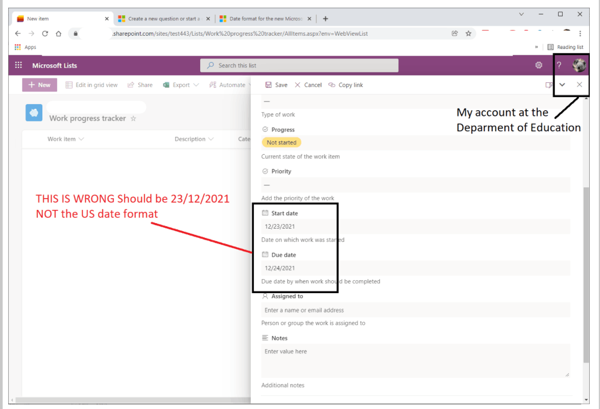 According to your description, it seems like you have set date format as dd/mm/yyyy(UK date format) from OneDrive Settings>Reginal Settings. But the dates in your Microsoft Lists still display as mm/dd/yyyy(US data format).