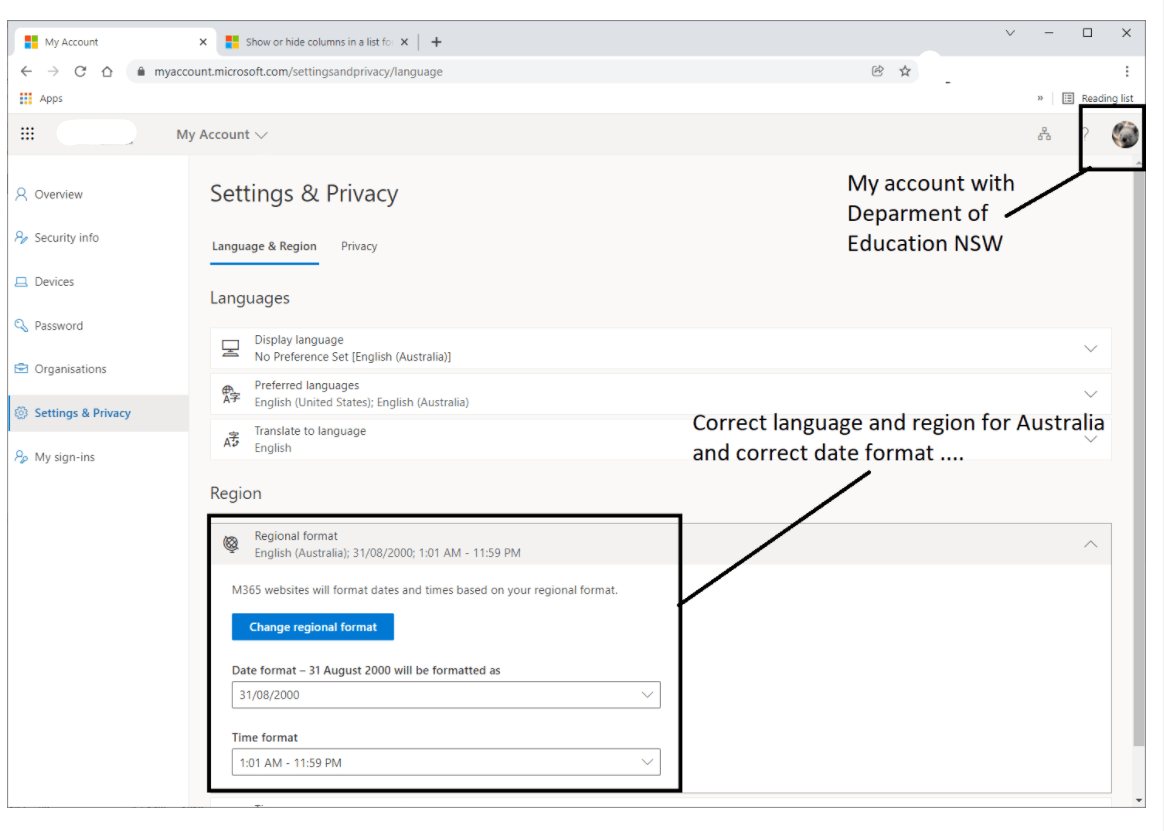 If My Lists, then the new list is saved in OneDrive for business, the date setting inherits from the OneDrive for business site regional settings.