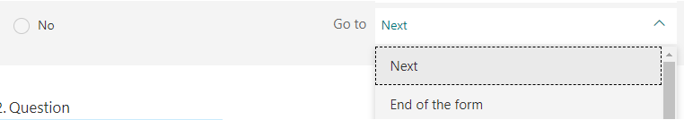 Regarding your second question, do you mean that you have to manually add a no every time, choose end of the form? I did not understand your needs in detail, can you provide more detailed information to let me help you with the test