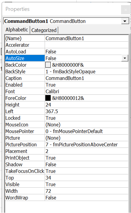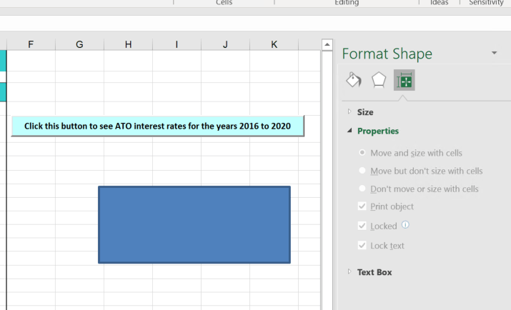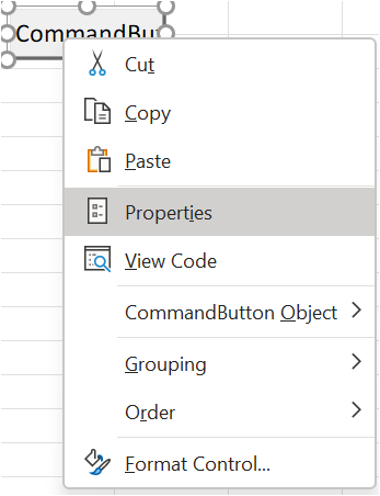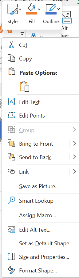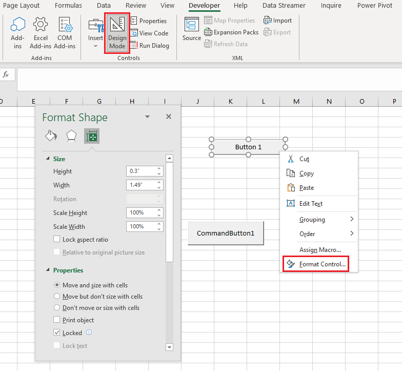 According to the screenshot you provided, we can see that the 'above shape' is the button control, in this case, please first go to the 'Design Mode', then right-click the button control to select it so that the Format Panel is editable.