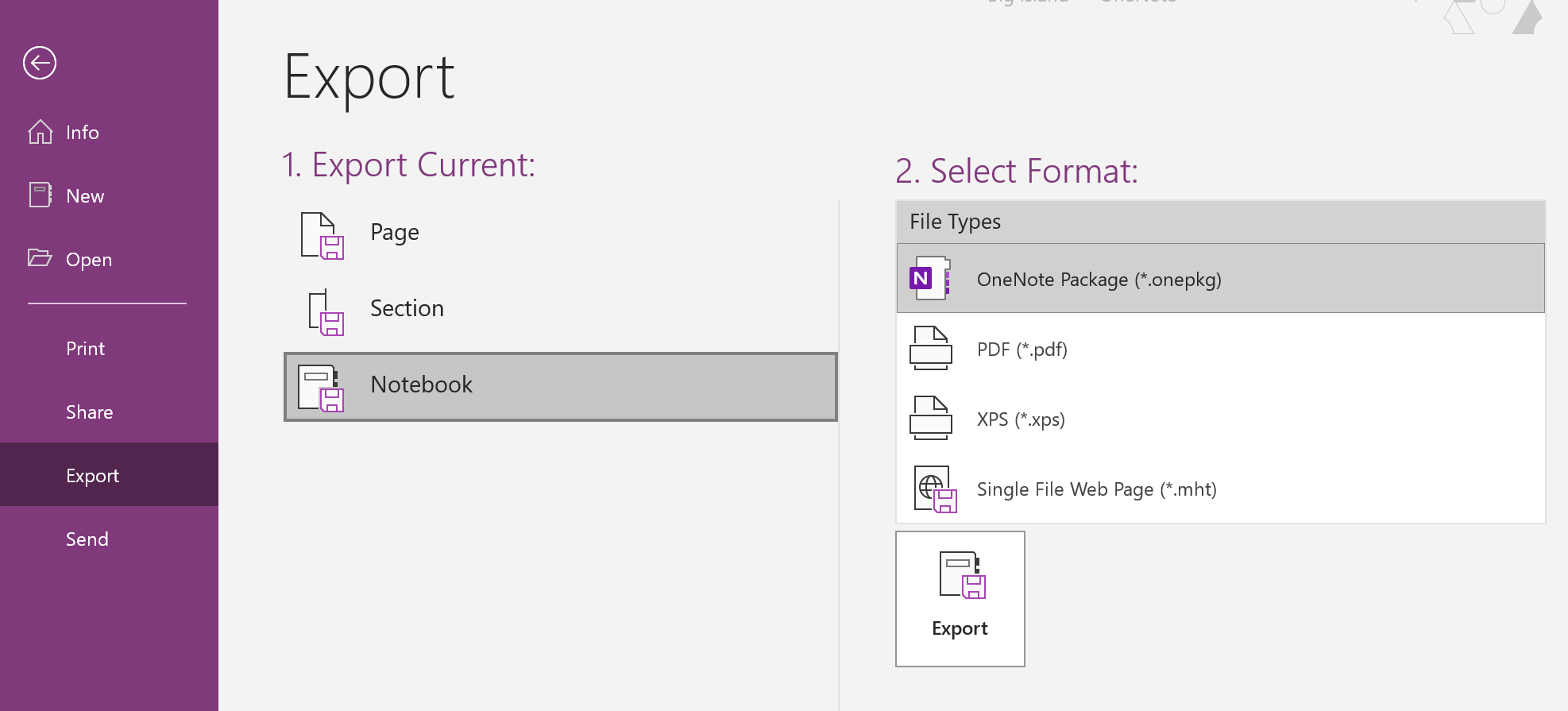 Hello Stryderis, Thank you for bringing this to our attention. We appreciate that you've taken the time to post your concern here in Microsoft Community Forum. We understand that you’re having trouble exporting a Notebook in OneNote. Let’s check on this together and find ways to address this matter.