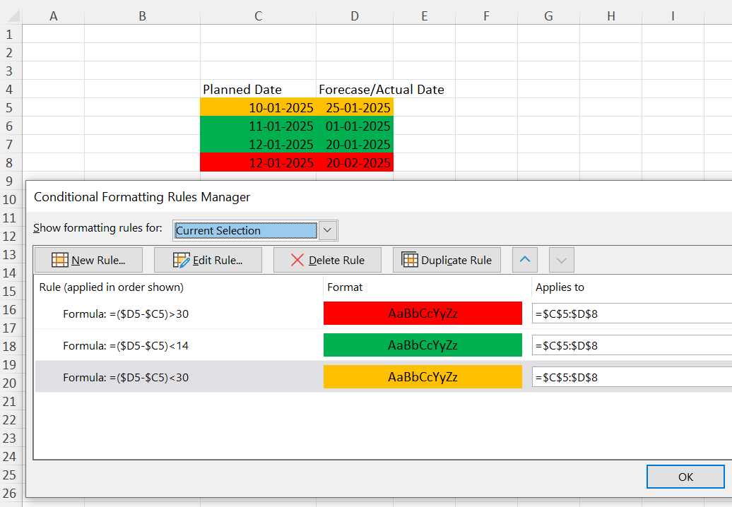 2nd) MS Excel will apply the Amber Rule - if it is true.