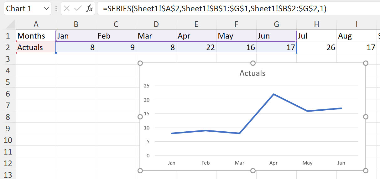 =SERIES("Actuals",Book1.xlsx!Months,Book1.xlsx!Actuals,1)