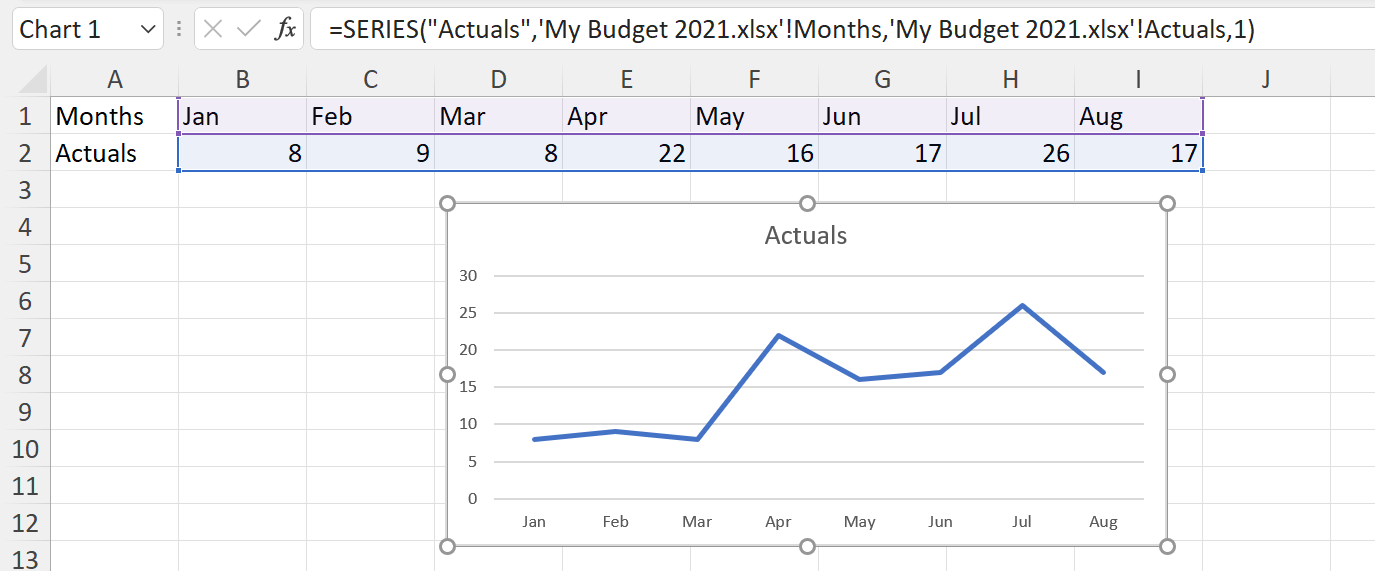=SERIES("Actuals",'My Budget 2021.xlsx'!Months,'My Budget 2021.xlsx'!Actuals,1)