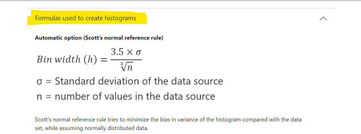 According to your description, it seems like you want to get the formula which determines the bin width in histogram chart.