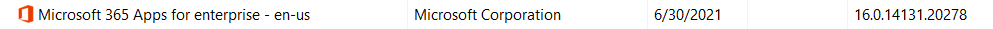 The screen shots you have suggested are below, one from Excel: File>Account, and two from Settings>Programs>Add or remove Programs. Please advise. Thanks.