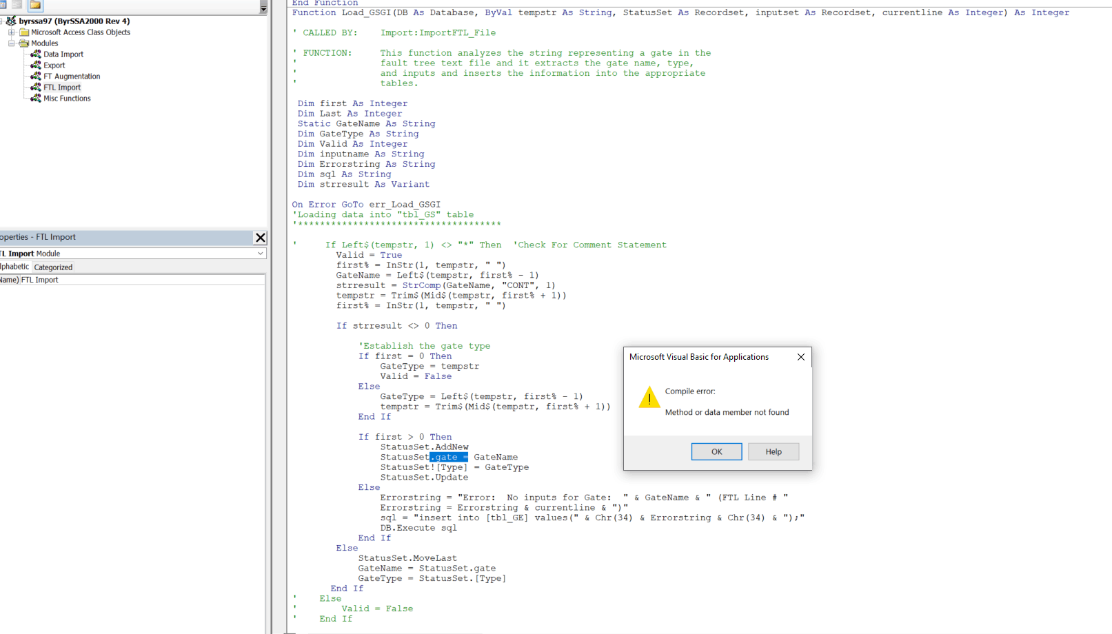 I'm opening a database created in 2000 with Access 2016. There is a module that is used to import data from a text file (extension is .ftl for fault tree logic). I get the following compiling error when I try to import. Seems like it doesn't recognize ".gate". I'm wondering if there is an object library that I don't have referenced. Is there a way to look at the contents of all the reference libraries available?
