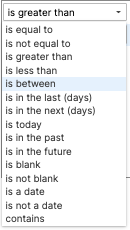 In Excel or Smartsheet, you tend to get a wider set of parameters, such as: