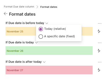 One particular use case I'm trying to migrate across is an asset management tracker, which I know there's a template for MS Lists. One requirement is to have either the entire row and/or the Due Date column to appear in differing colours, depending on how close to the Due Date column it is. This is certainly possible, but only with limited parameters: