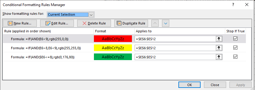 Finally, close the Conditional Formatting Rules Manager by clicking OK.