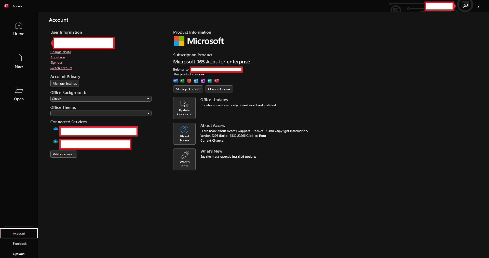 - Please share the product information of Access with us so that we can do the same test on our end in the same environment. Please go to File>Account then shares the screenshot with us.