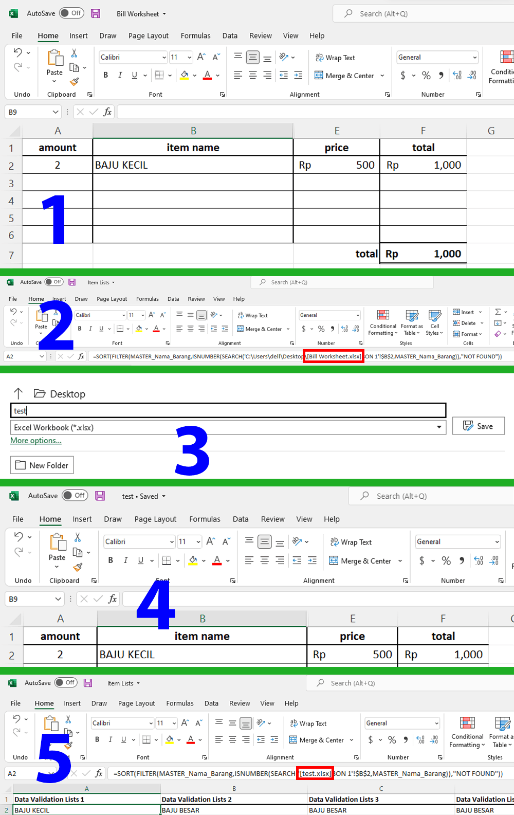 1.Before you Save as the bill worksheet, we suggest you go to the Item lists worksheet which contains the formula, save it and close it. (keep it closed when you save as bill worksheet)
