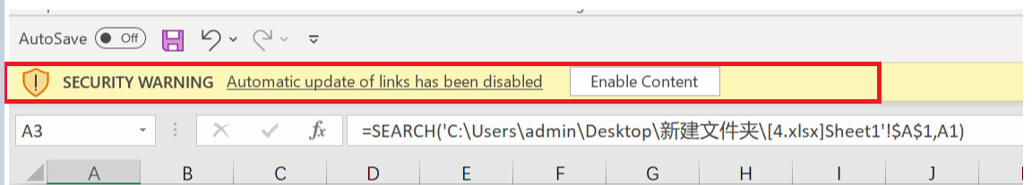 You may see a message as below. Click Enable Content, then it will keep the original bill worksheet name and continue linking to the original bill worksheet.