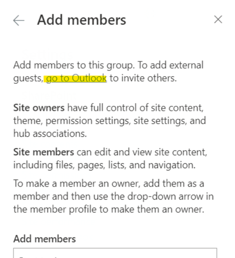 From your description, it seems that you are trying to add external user to SharePoint site, however, getting error when trying to add guest user from Outlook page.