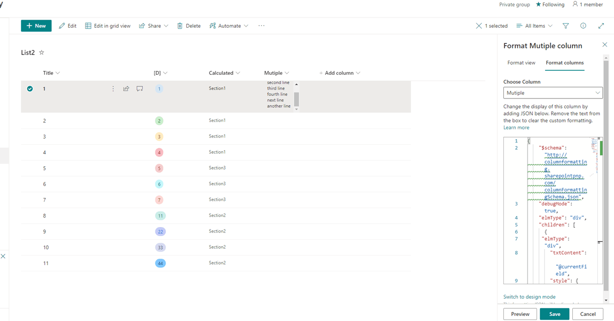 At the same time, per our search, JSON code may help achieve your requirement, you can choose to use the JSON code below to format the multiple line text column: