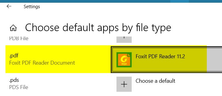 Or you can go to Start menu > Default Apps > Choose Default Apps by File type > find PDF