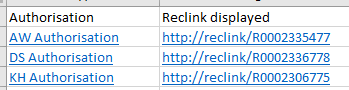I tried using this VBA in Excel, however it only displays the shortened reclink text.