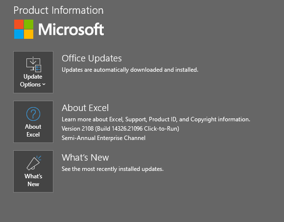 - Please provide the screenshot of Microsoft 365 Product Information. To get this screenshot, open Word or Excel, click File>Account, capture the screenshot of all the information mentioned under Product Information.