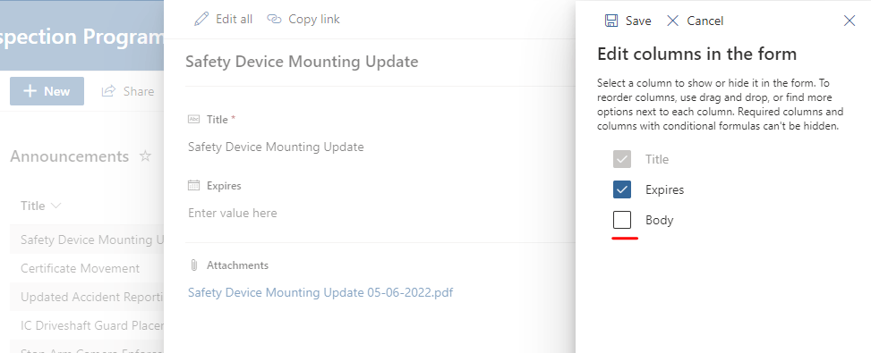 ~~2. May I reconfirm the current content type of the Announcement list is Announcement or not?~~