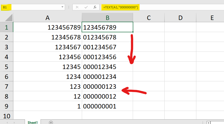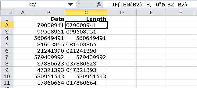=IF(LEN(B2)=8, "0"& B2, B2)