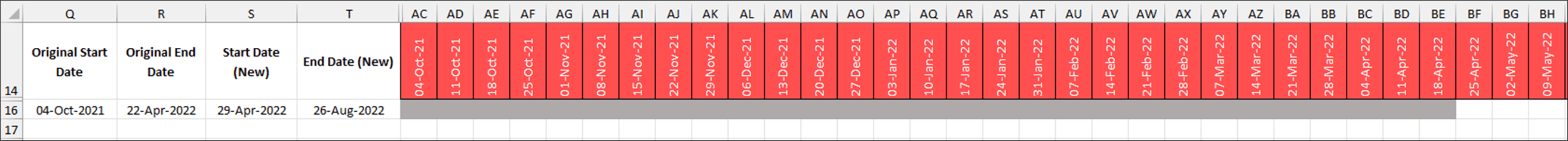 - the farthest of End Date Original Monday in cell AB15 AND Extension End Date Monday in Z15