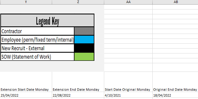 I need a formula that references off the helper columns because the original IF formula feeds off them to identify the different Resource Types with conditional formatting built in to change colour based on the different resource types and dates.