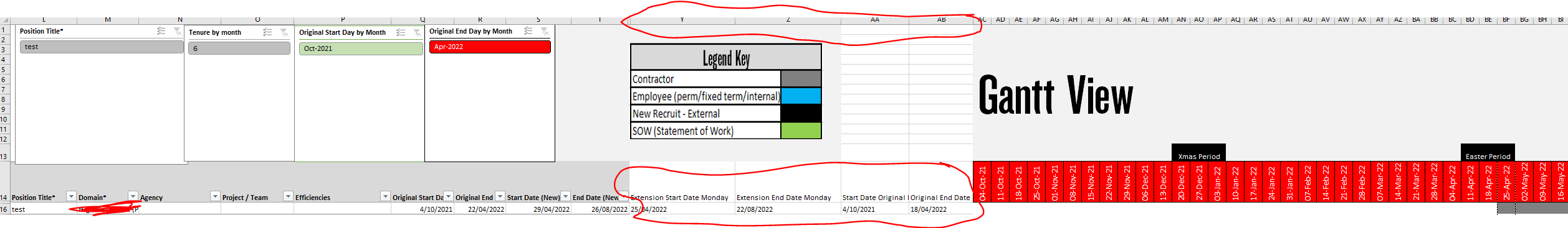 Gantt chart to include Extension Date columns