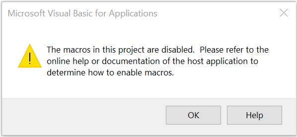 1. Upon opening the macro enabled .xlsm file I now see the following message: