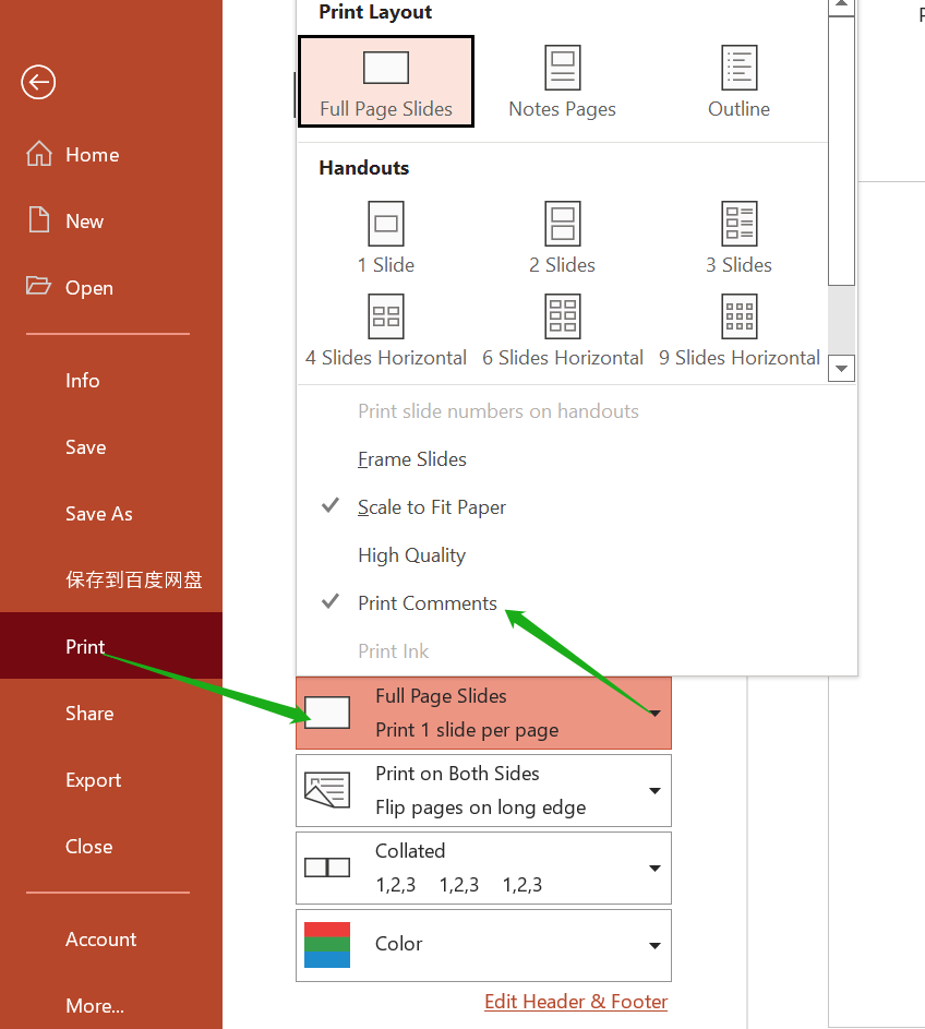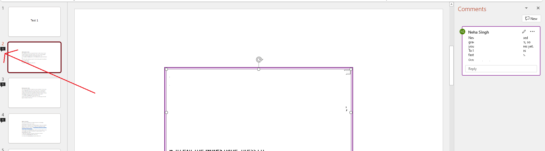 The slide with comments will show a small comment icon under the slide number (shown in the screenshot below) and clicking the icon can make comment appear and disappear on the slide.