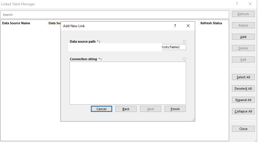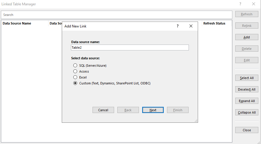 It doesn't seem to matter whether I use relink or refresh, I still run into issues of not being able to change the data format because the database is read-only.
