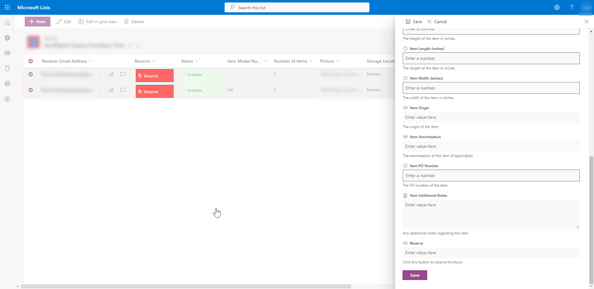 The reserve column is a column containing a button which runs a power automate flow upon clicking it.