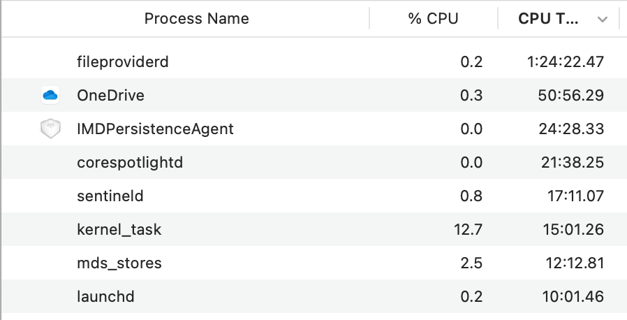 Are you also seeing massive CPU utilization? Check out the CPU Time. This is after I rebooted my laptop last night before going to bed. I let it sit, logged in, with no apps open. It finally settled down, but wow.