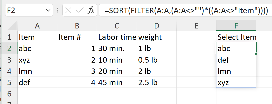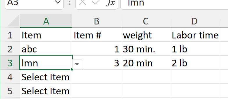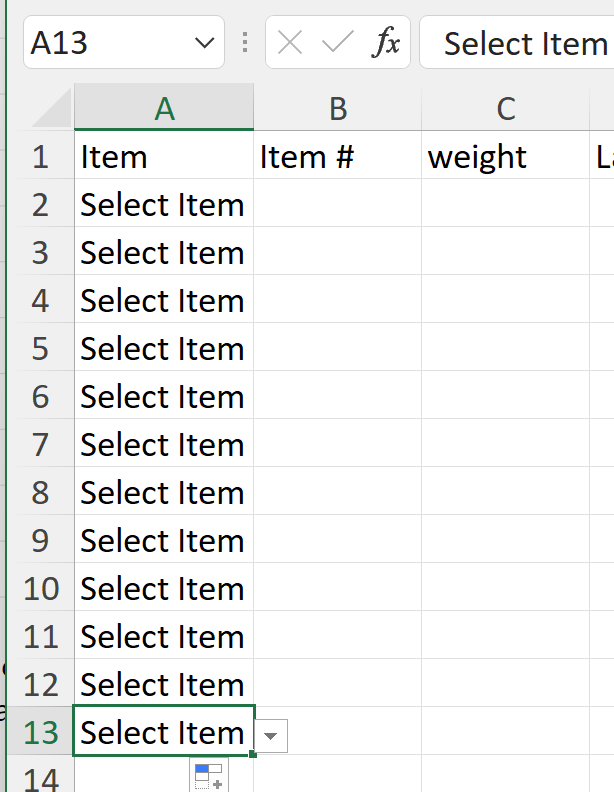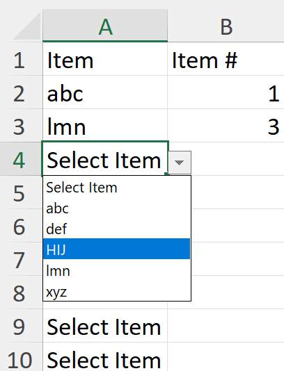 Select the “Drop Down Lists” sheet. Then select the first item in the list you want to include and hold down on the mouse as you drag downwards to include ALL the other items in the list. The window will begin to look like this: