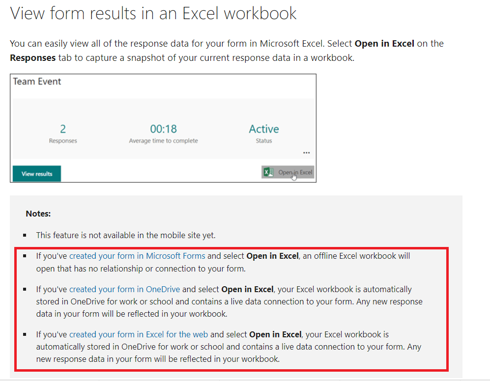 If yes, we'd like to let you know that if you create a form from Microsoft Forms for the web, the related Excel file is offline and won't get continues update data.