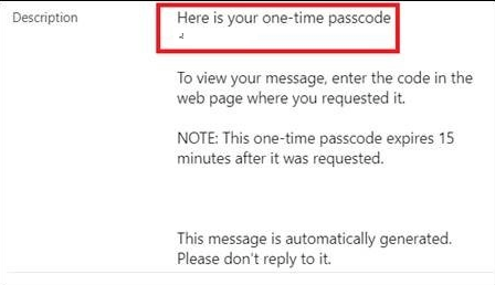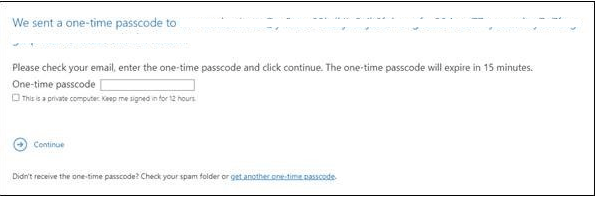 2. A box appears Sign in with a One-time passcode and we click on it (see pic 002)