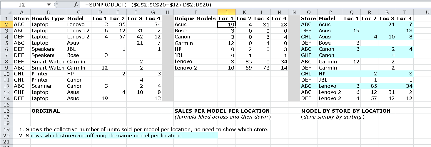 | Store | Goods Type | Model | Location 1 | Location 2 | Location 3 | Location 4 |