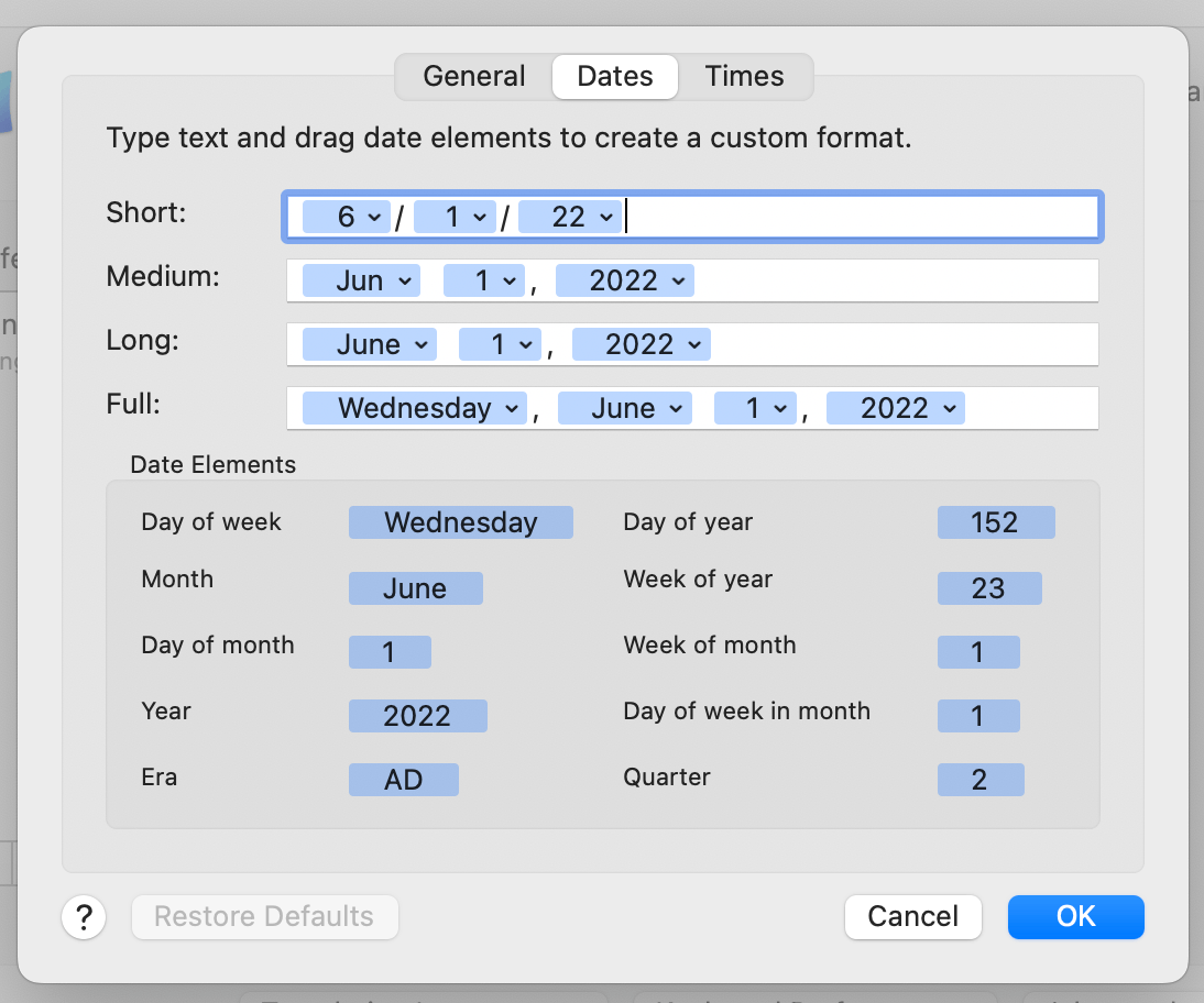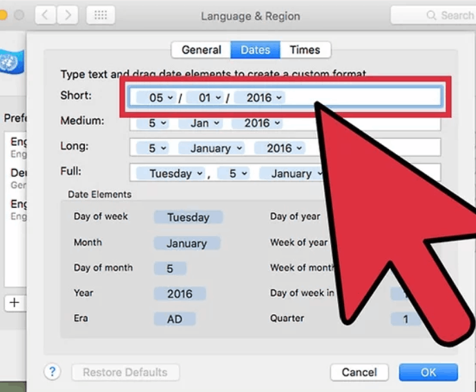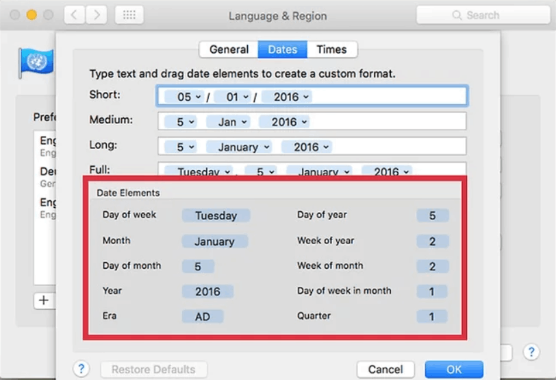 - Based on your description, we did a test on our end, go to System Preferences --> Language and Region --> Advanced --> Dates, and