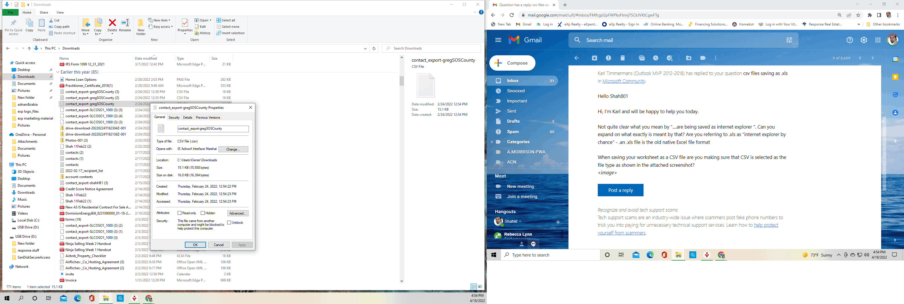 So when I saved my csv files they show up in my onedrive or download files as csv or xlsx type but it won't open as excel