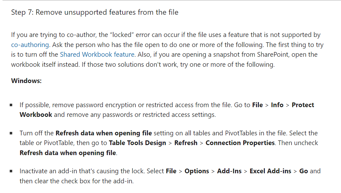 I noticed you mentioned "I was concerned about the unsupported excel feature possibility", you can check the below part in this article: Excel file is locked for editing (microsoft.com)