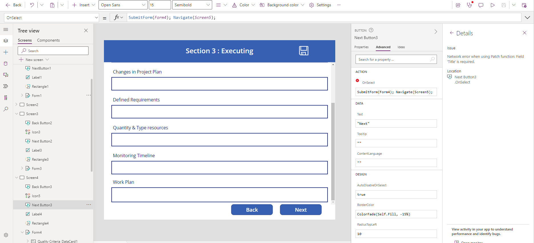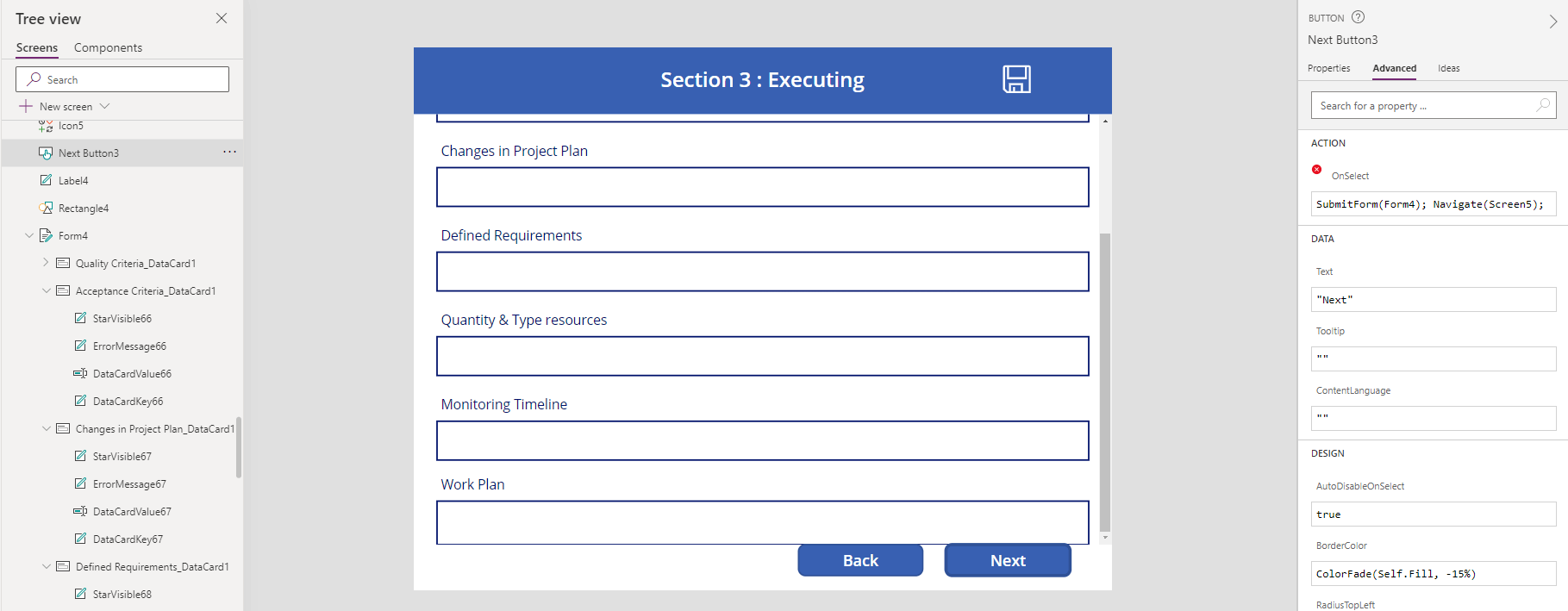 Meanwhile, it may be better to type SubmitForm(SharePointForm1);NewForm(SharePointForm1) on the Submit button.
