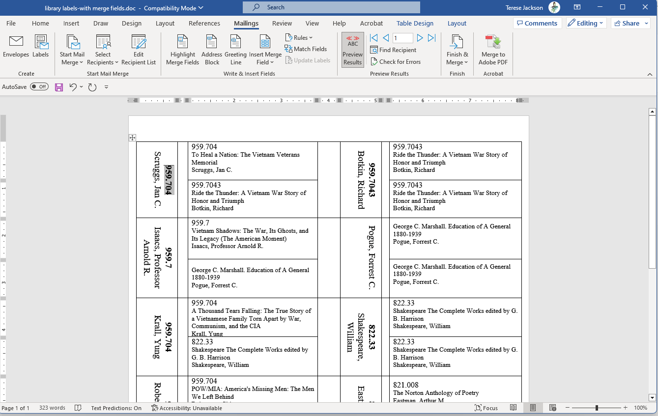 delete the «Next Record» fields from each location in which it appears EXCEPT for the third, sixth, ninth, etc Whether that works out exactly, with depend on the number of labels there are on a sheet.